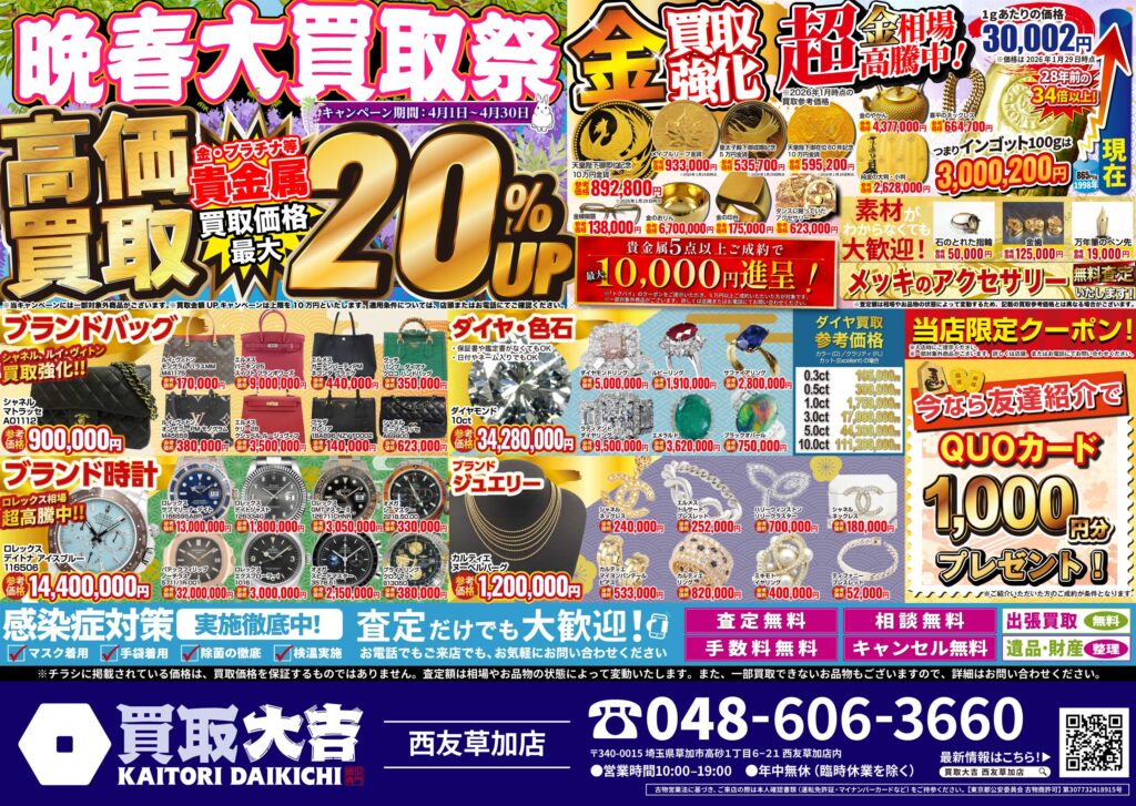 金・貴金属・ブランド品はもちろん、お値段がつくか迷われているものも是非お持ちください。