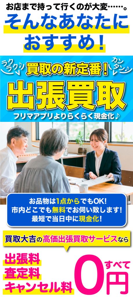 お品物の名前や種類、状態、またはブランド名、型番などの情報があると、概ねの査定額をお伝えできるかと思います。