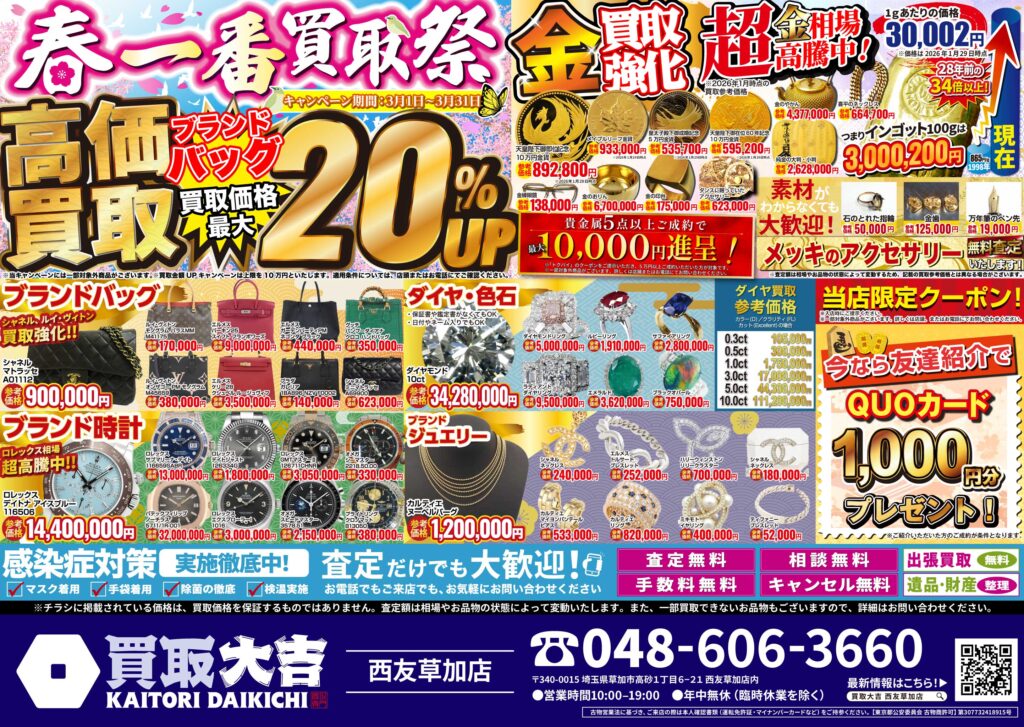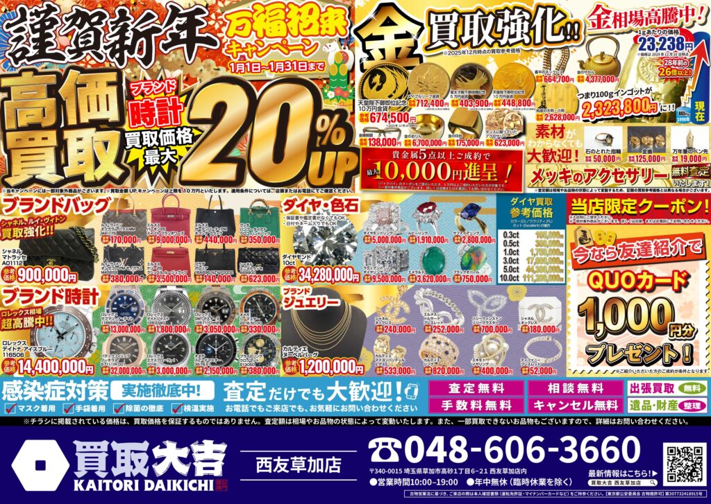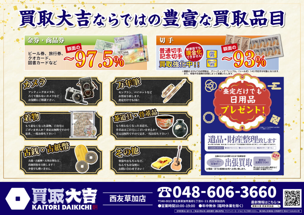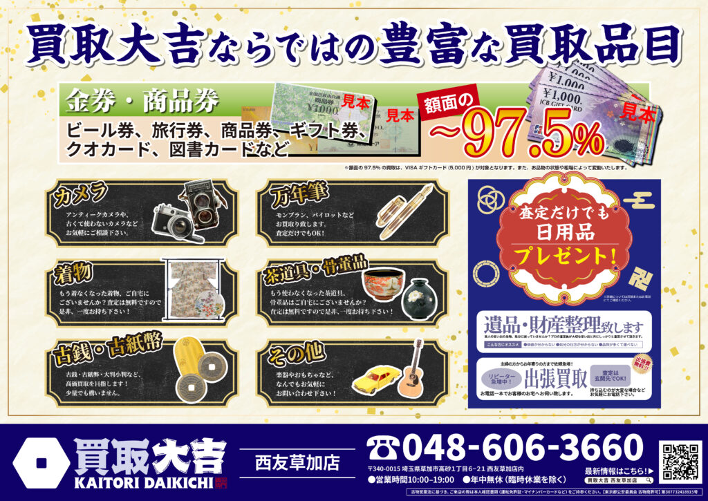 金・貴金属・ブランド品はもちろん、お値段がつくか迷われているものも是非お持ちください。